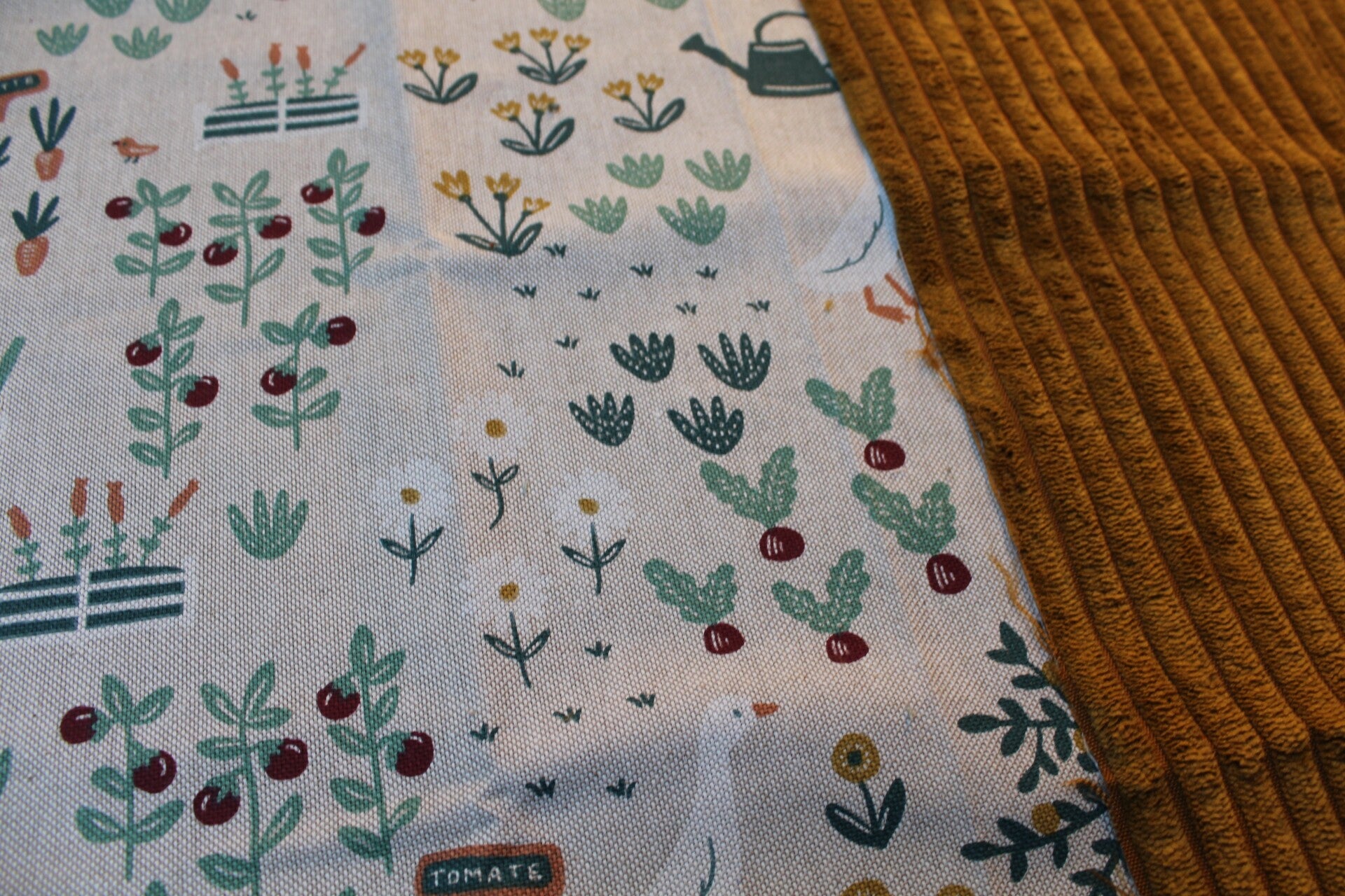 Mit weichem, geripptem Cord in sanftem Grün und einem fröhlich-verspielten Canvas voller Tiere, Pflanzen und kleinen Details lädt diese Schaukel zum Entdecken ein. 🐦🍒